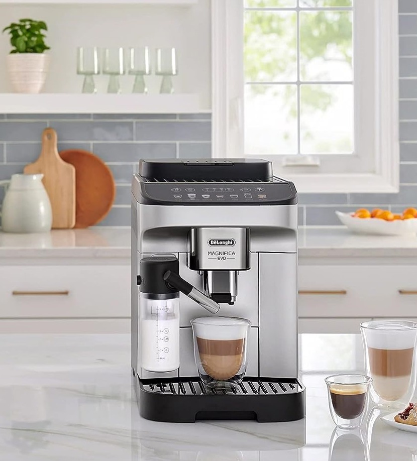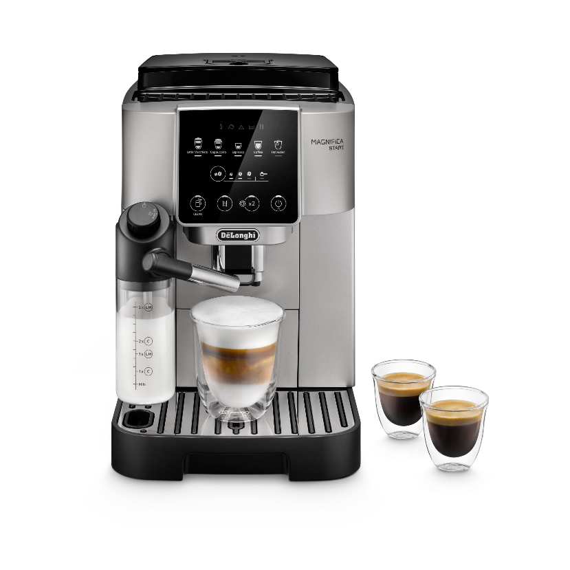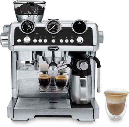 El sistema esta equipado con un modo de espera de bajo consumo y un amplio sistema de seguridad: luz de advertencia de falta de agua, falta de cafe, necesidad de ciclo de limpieza y sustitucion del filtro de cal. El acceso a los compartimentos de servicio se realiza mediante una apertura telescopica.